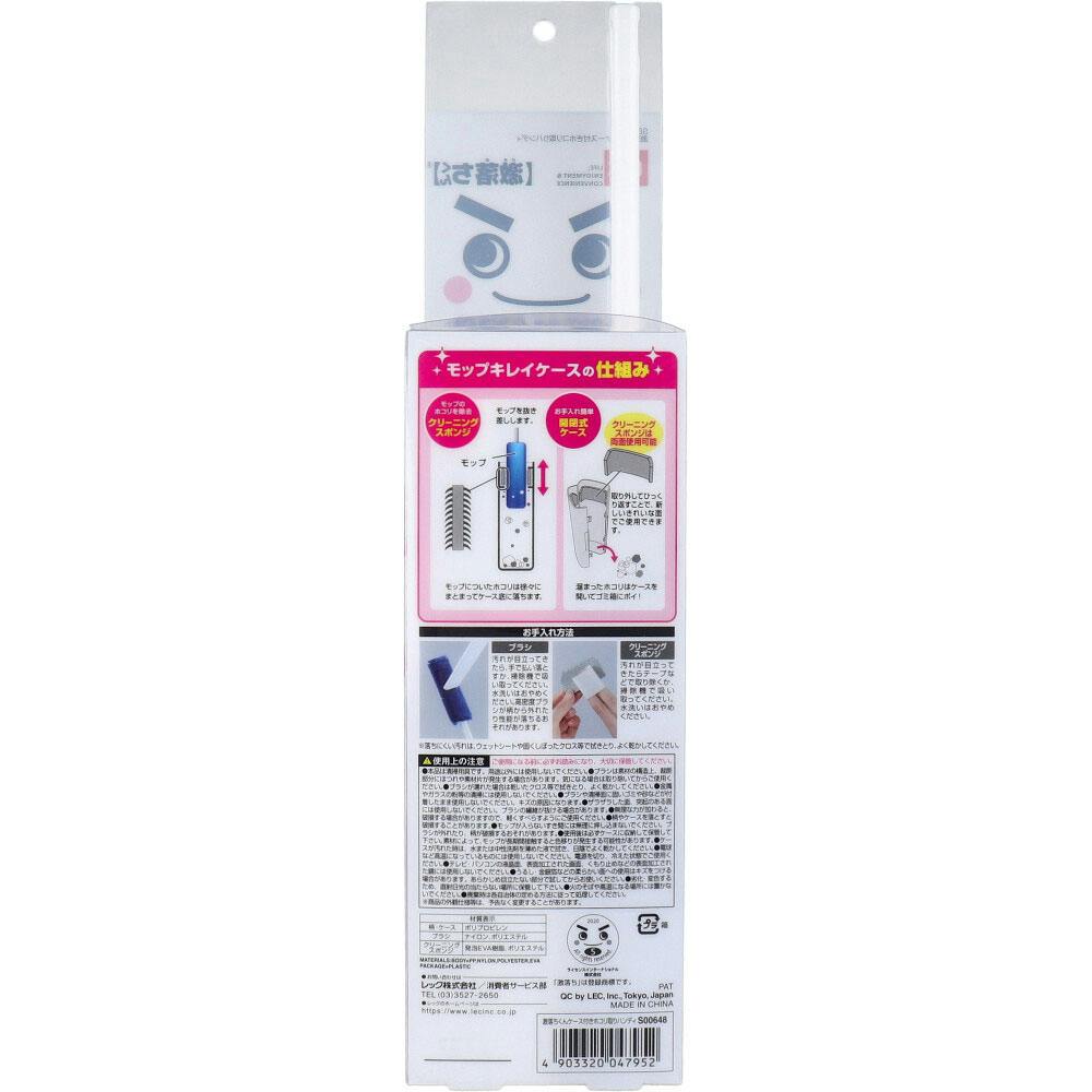 ケースに通すだけ モップがキレイに!ケースに通すだけ。いつでもモップキレイ!●モップはケースに通すとキレイになり、ホコリは徐々にまとまって溜まります。●ケースがパカっと大きく開くので、溜まったホコリを簡単に捨てられます。●シンプルな形状のケースだから、手に取りやすい場所に置きやすく、いつでもサッとお掃除できます。●PC・テレビ周りに/棚・小物の間に。●サッと使って片づけやすいシンプルケース付き。