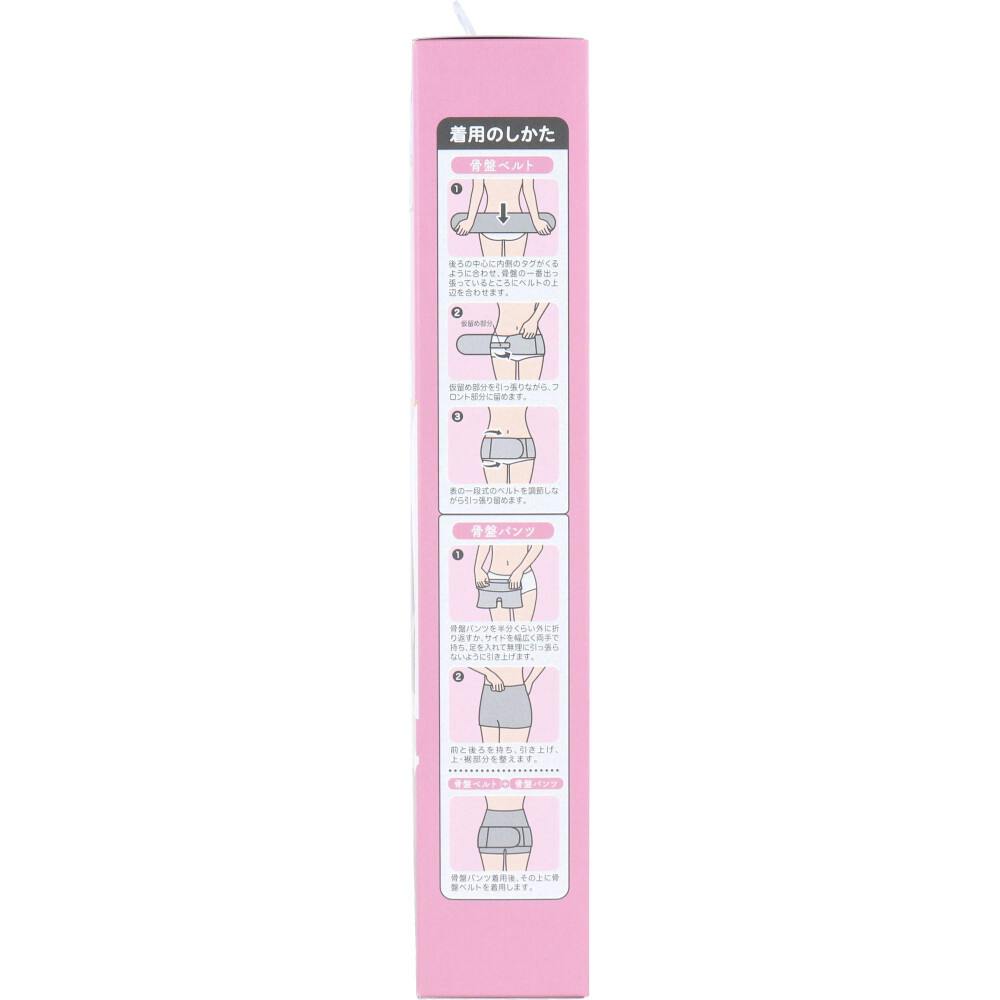 ★骨盤ベルト(1)後ろの中心に内側のタグがくるように合わせ、骨盤の一番出っ張っているところにベルトの上辺を合わせます。(2)仮留め部分を引っ張りながら、フロント部分に留めます。(3)表の一段式のベルトを調節しながら引っ張り留めます。★骨盤パンツ(1)骨盤パンツを半分くらい外に折り返すか、サイドを幅広く両手で持ち、足を入れて無理に引っ張らないように引き上げます。(2)前と後ろを持ち、引き上げ、上・裾部分を整えます。★骨盤ベルト+骨盤パンツ骨盤パンツ着用後、その上に骨盤ベルトを着