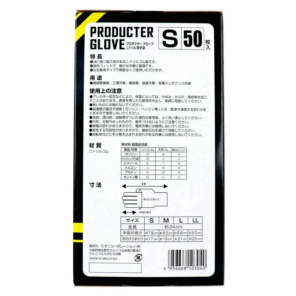 【業務用】プロダクター グローブ ニトリル薄手袋 粉なし 左右両用 ブラック Sサイズ 50枚入 ×1点【送料込み】 #4956668103040
