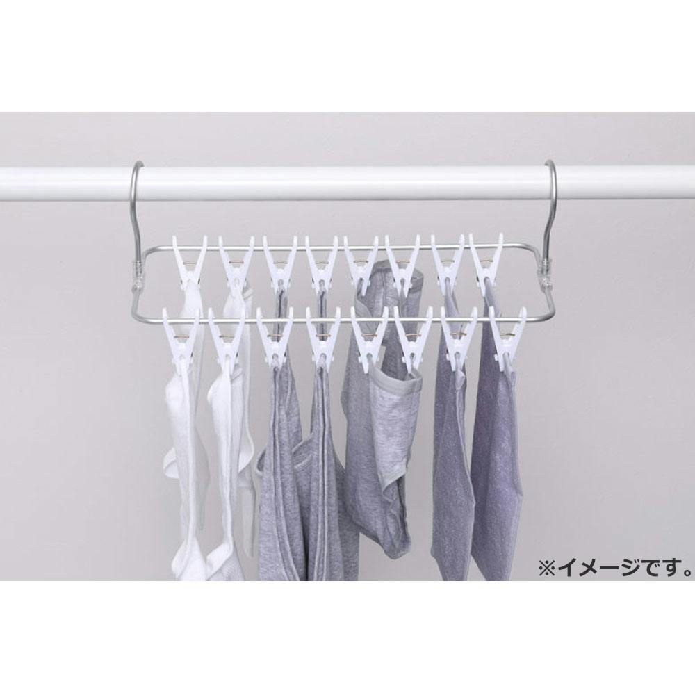 洗濯物が一度にパッと外せる!両側からピンチを押せば、一度に簡単に外せる!●ピンチ跡がつきにくい。●コンパクトに干せる。●靴下や下着干しに。