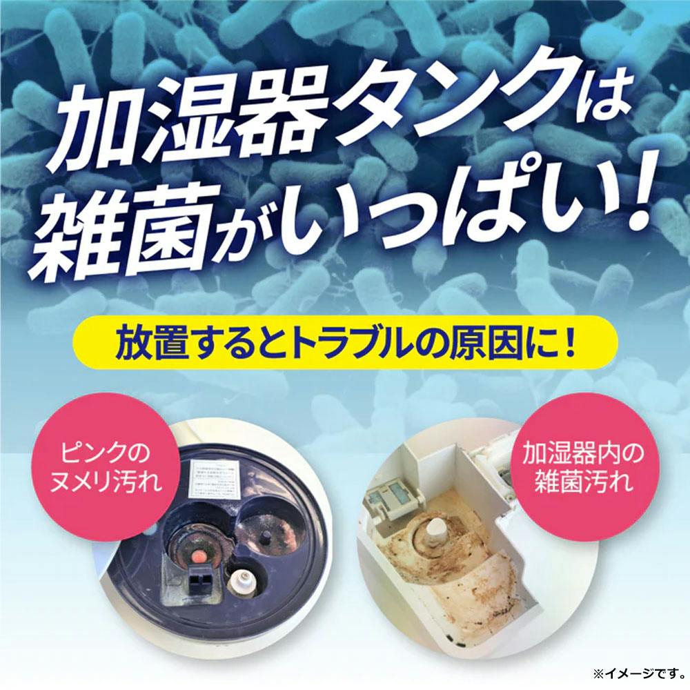 カンタン!!注ぐだけで雑菌をしっかり除去!!加湿器タンク内のヌメリや嫌なニオイを防ぎ雑菌をしっかり防止!給水時にタンクに入れるだけ!●優しい成分を使用した抗菌剤だからお部屋にいながら使える!リビングでも、ダイニングでも、寝室でも。●99.99%異常除菌。ヌメリ防止。●無香料。液体タイプ。※本品には計量カップは付いていません。本体500mLの容器の計量キャップを保管していただくか、お手持ちの計量カップを使用してください。●1000mL、お徳用。