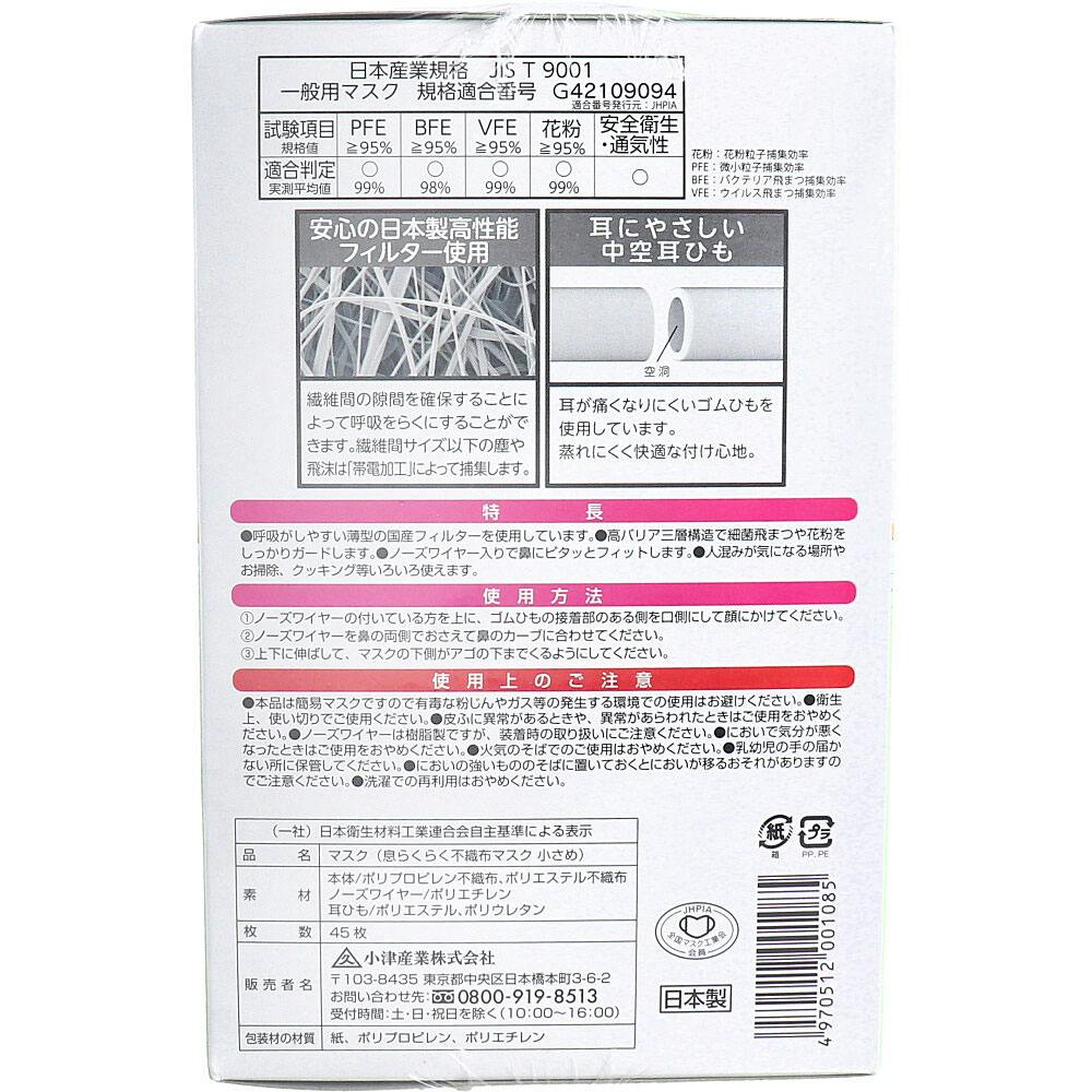 デュウエアー 息らくらく不織布マスク 小さめサイズ 45枚入 ×1点【送料込み】 #4970512001085