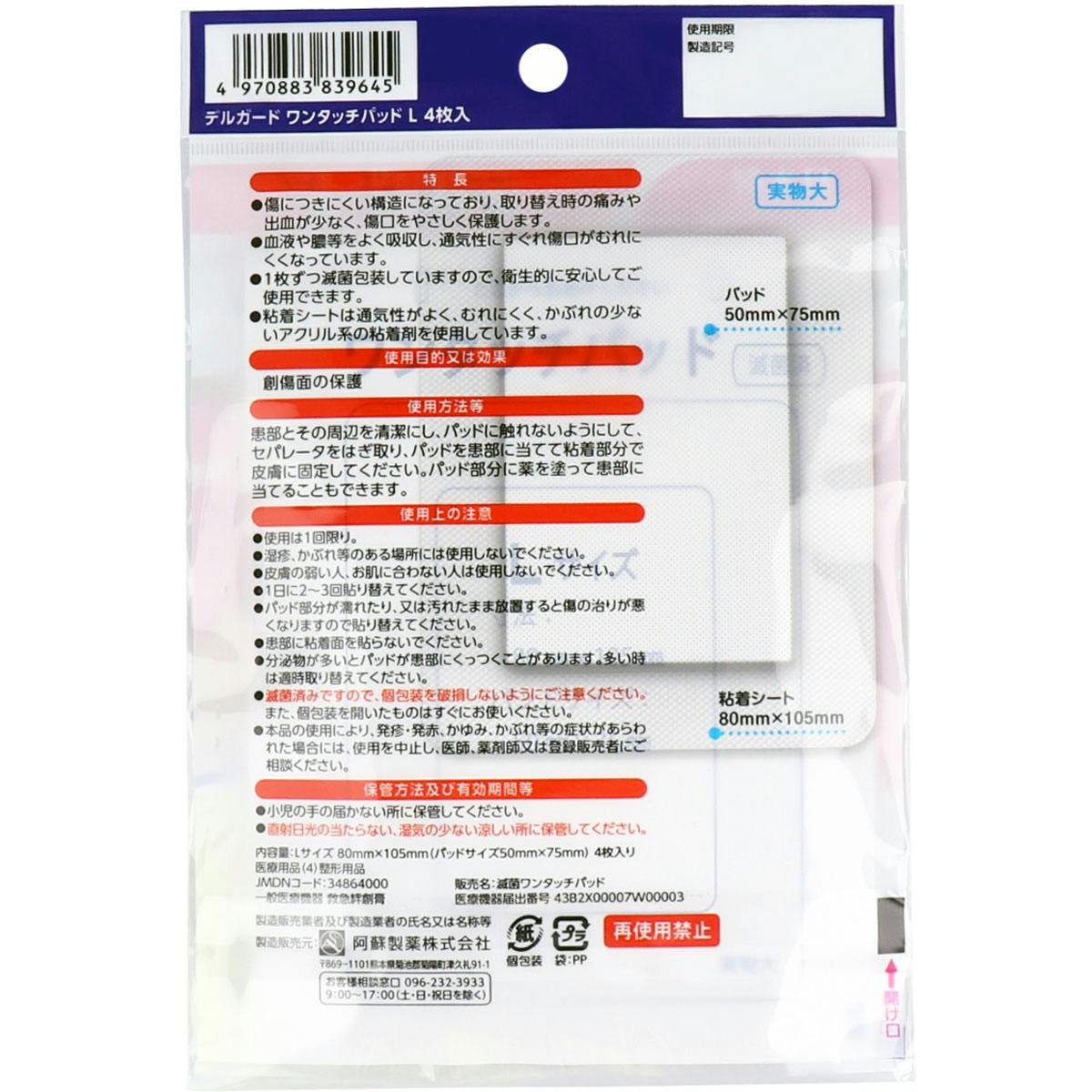 Lサイズ:パッド 50mm×75mm、粘着シート 80mm×105mm