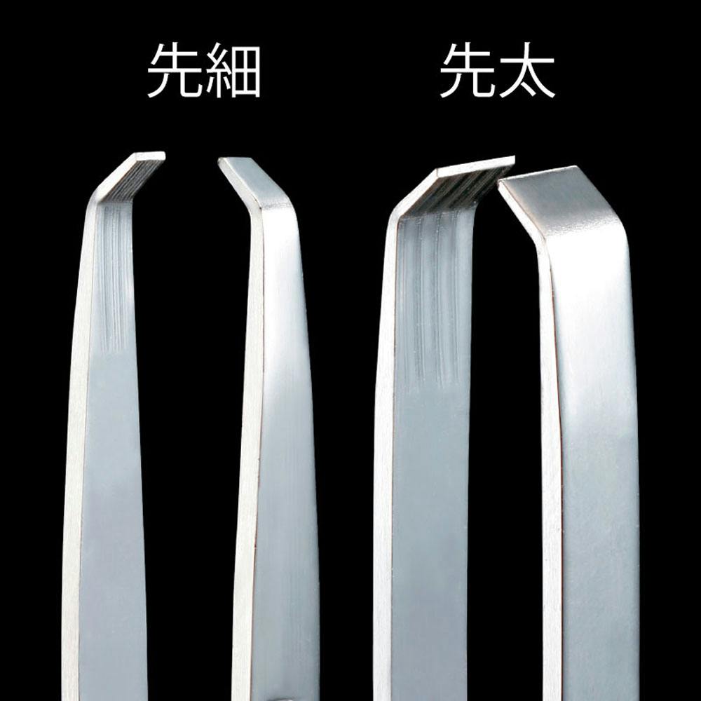 先細・先太 万能セット精密仕上げの先合わせ。● 熟練の職人による精密仕上げ。肌に優しく、しっかり抜ける。●シンプルな先太・先細の 万能毛抜きセット先端がフラットで細く短い毛や太い毛もガッチリつかめます。先細タイプと先太タイプの2本セット。一本抜き、数本抜き等、用途に合わせて使い分け頂けます。●先細タイプ先幅:約2mm、先太タイプ先端幅:5.5mm