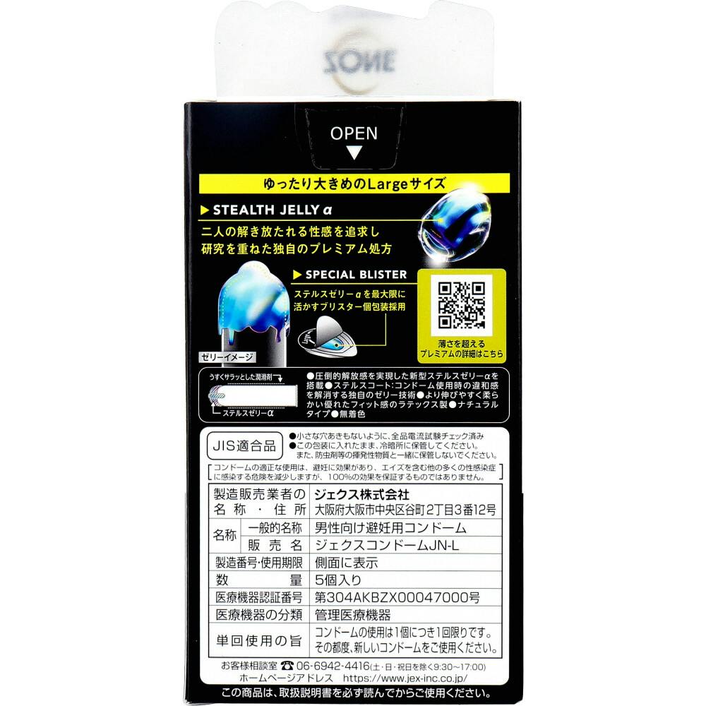待望の!大きめLsize。あなたはもう離れられない。※感覚には個人差があります。●ゆったり大きめのLargeサイズ。●二人の解き放たれる性感を追求し研究を重ねた独自のプレミアム処方。●ステルスゼリーαを最大限に活かすブリスター個包装採用。●圧倒的解放感を実現した新型ステルスゼリーαを搭載。●ステルスコート:コンドーム使用時の違和感を解消する独自のゼリー技術。●より伸びやすく柔らかい優れたフィット感のラテックス製。●ナチュラルタイプ。●無着色。●JIS適合品。●小さな穴あきもな