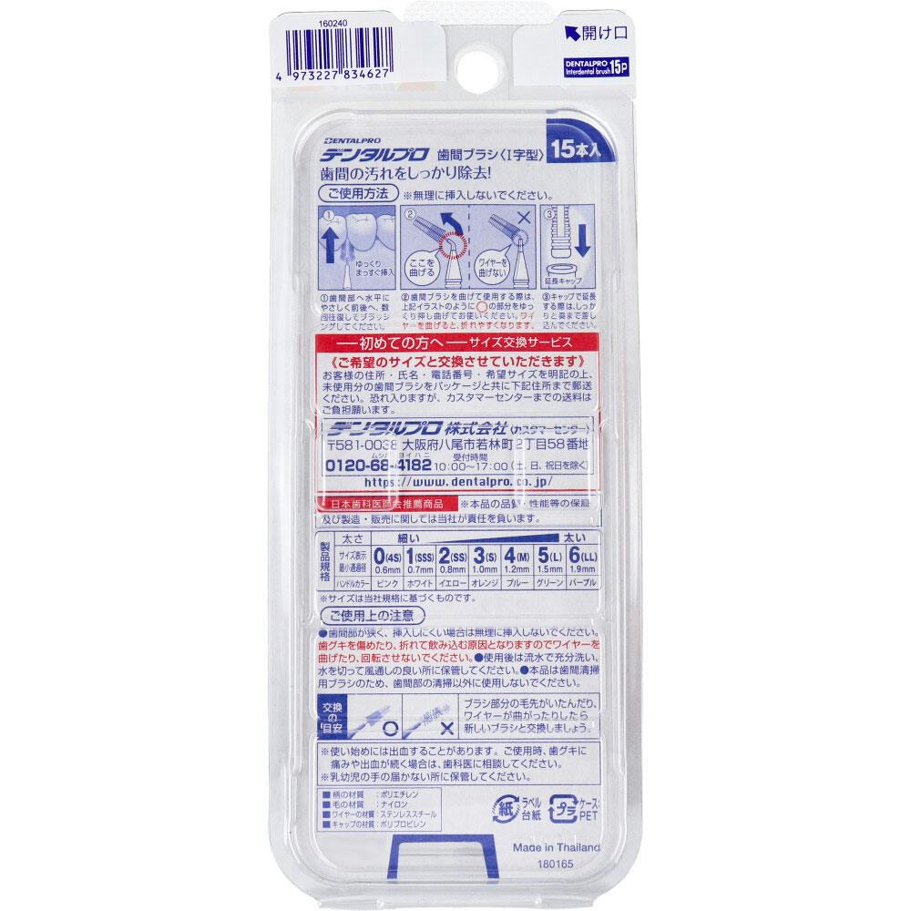 デンタルプロ 歯間ブラシ I字型 普通タイプ サイズ3(S) 15本入×6個セット ×1点【送料込み】 #4973227325330