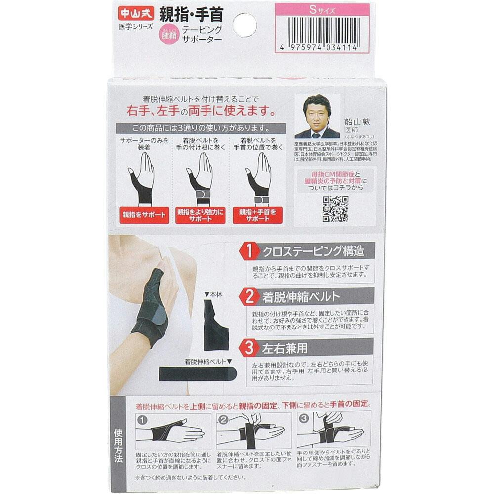 中山式 医学シリーズ 親指・手首テーピングサポーター 左右兼用 Sサイズ 1枚入 ×1点【送料込み】 #4975974034114