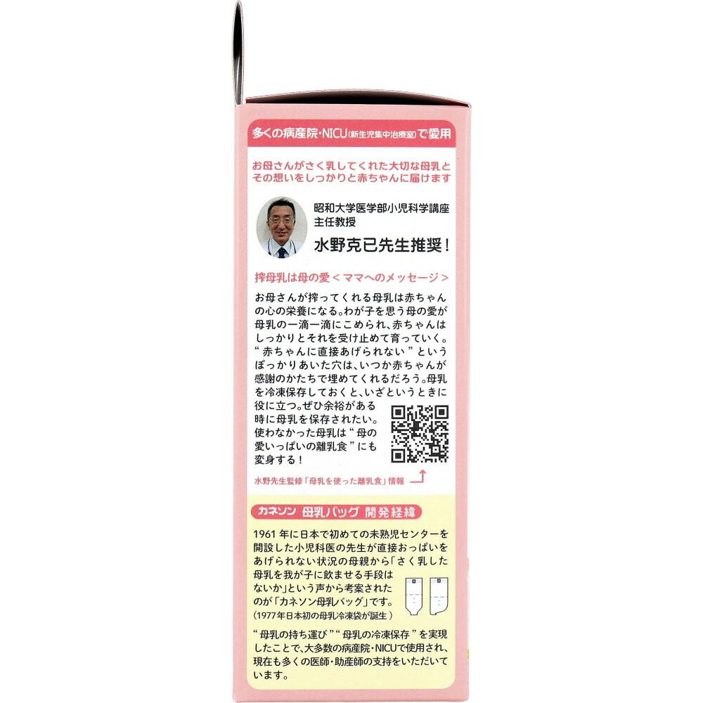 多くの助産院でご愛用。衛生的に母乳を冷凍・冷蔵保存!多くの病産院・NICU(新生児集中治療室)で愛用。お母さんがさく乳してくれた大切な母乳とその想いをしっかりと赤ちゃんに届けます昭和大学医学部小児科学講座主任教授水野克己先生推奨!●赤ちゃんが飲む母乳だからこそカネソン独自のこだわり仕様。・素材:内層、中間層には安全性の高いポリエチレン、外層に強度の大きいナイロンを使用した3層構造。母乳の中にプラスチック成分が溶け出すような心配がないこだわりの設計。・製法:フィルム素材をクリー