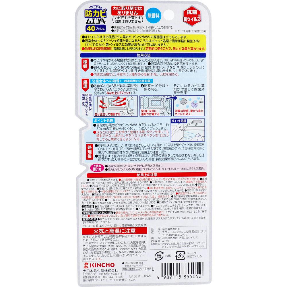 お風呂の防カビムエンダー 40プッシュ 無香料 ×1点【送料込み】 #4987115855052