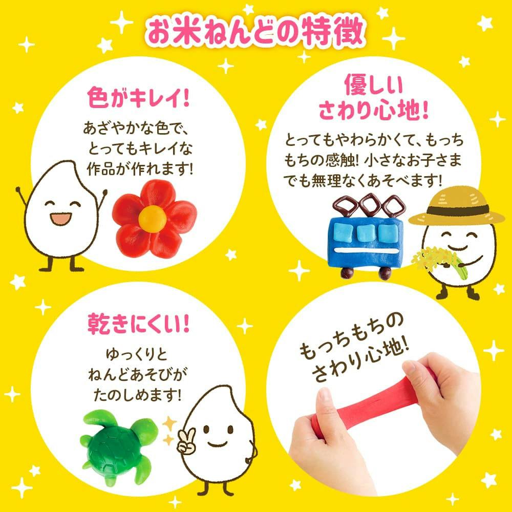 安心・安全素材 お米ねんど!あざやか・やわらか!6色セット!●色があざやかキレイ!とってもキレイな作品が作れます!●もちもちやわらか!やわらかくて小さなお子さまにもこねやすい!●ゆっくり遊べる!乾きにくいので、ゆっくりとねんどあそびを楽しめます!