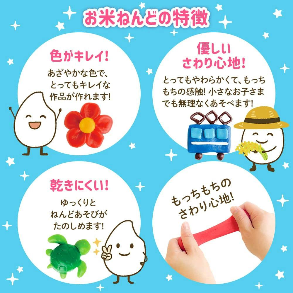 安心・安全素材 お米ねんど!あざやか・やわらか!9色セット!●色があざやかキレイ!とってもキレイな作品が作れます!●もちもちやわらか!やわらかくて小さなお子さまにもこねやすい!●ゆっくり遊べる!乾きにくいので、ゆっくりとねんどあそびを楽しめます!