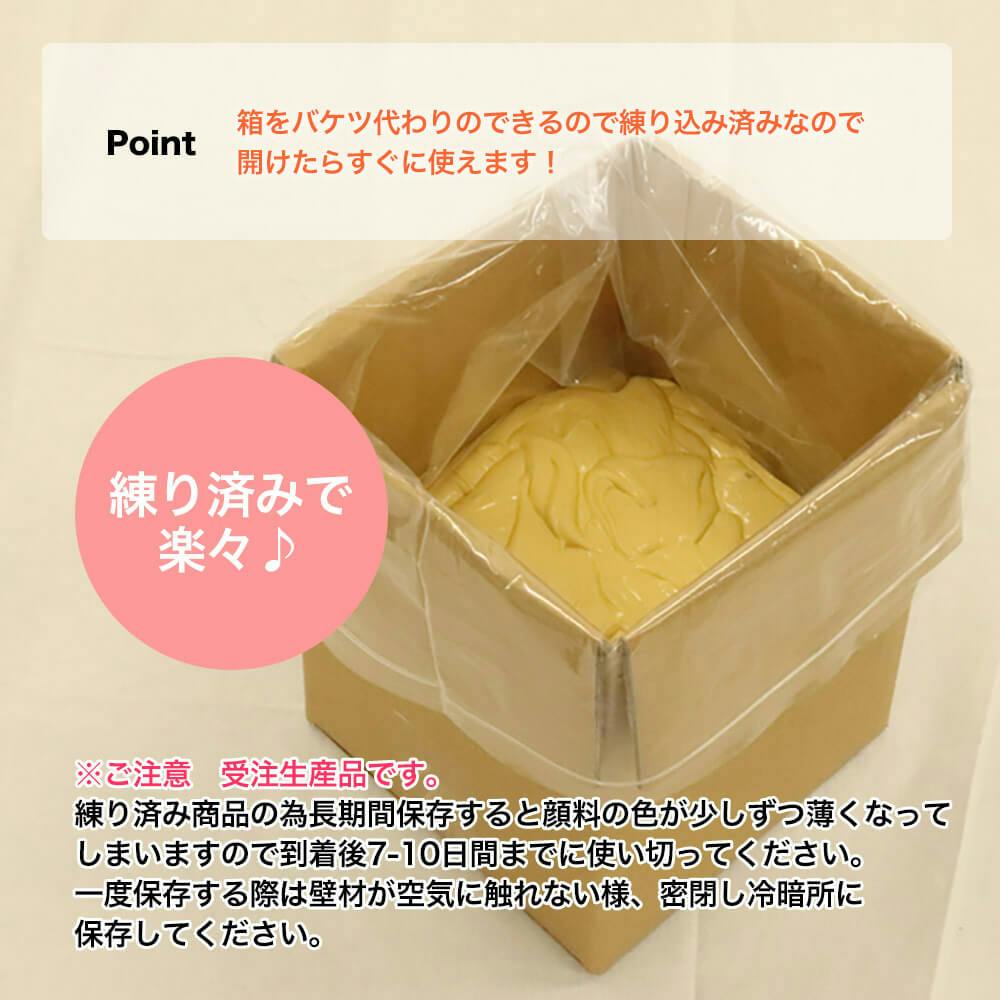 ・原料が天然素材の為、仕上がりが「下地」「施工」「その他の原因及び条件」により「色ムラ」や「白華」等の状態になる事があります。・原料が天然素材の為、季節、温度、その他の条件により粘度が変わることがあります。・施工可能面積は、「下地の状況」「仕上げの方法」「その他の原因及び条件」により大きく異なります。・練り済み商品の為長期間保存すると顔料の色が少しずつ薄くなってしまいますので到着後7-10日間までに使い切ってください。一度保存する際は壁材が空気に触れない様、密閉し冷暗所に保存してください。