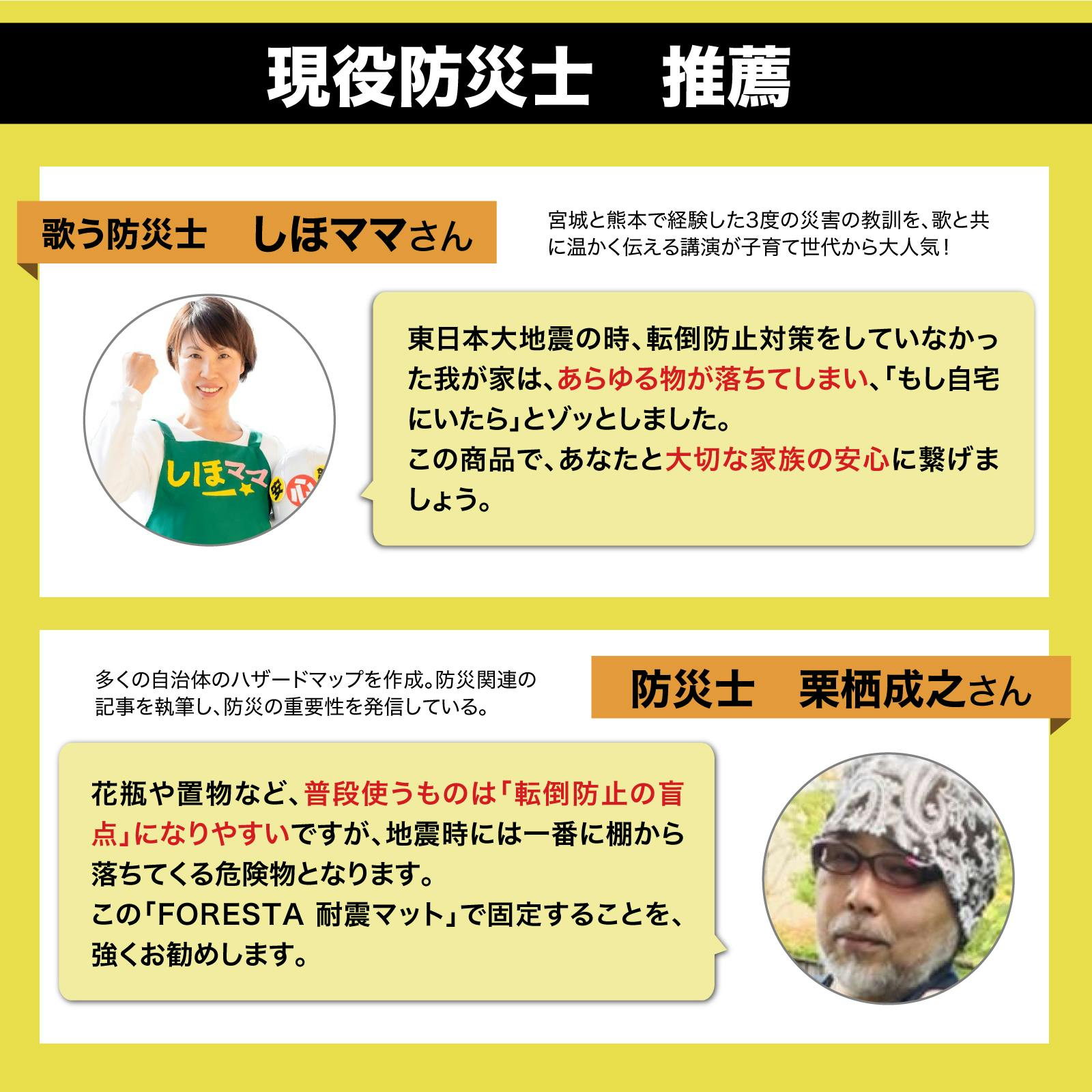 阪神大震災、東日本大震災、熊本地震を経験した現役防災士が、実際に試してみた上で推薦いただいております。