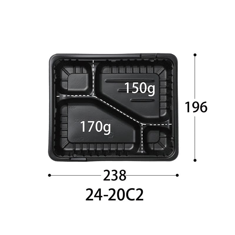 【50個×16袋入/ケース】弁当容器 CT ガチ弁 LIK24-20C2 BK 身 中央化学
