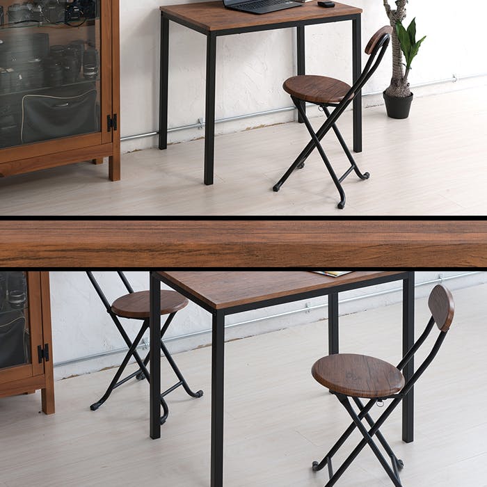 味わい深いヴィンテージ調のシートを採用した折りたたみチェア。凹凸があり木目により近い質感です。スリムに折りたたんで収納可能。座面ロック機能、脚先ゴムカバー付き。