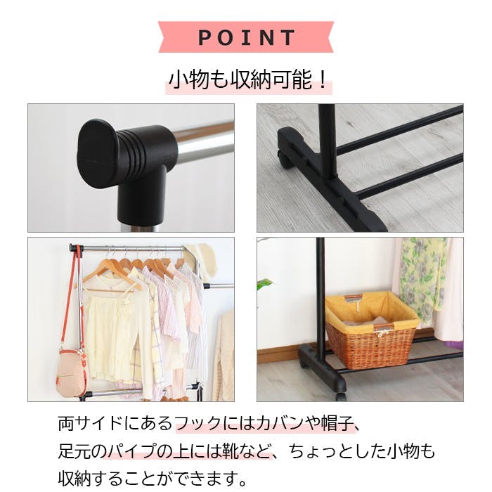 パイプハンガー 2段 スリム 2wayハンガー 大容量 省スペース おしゃれ キャスター付き