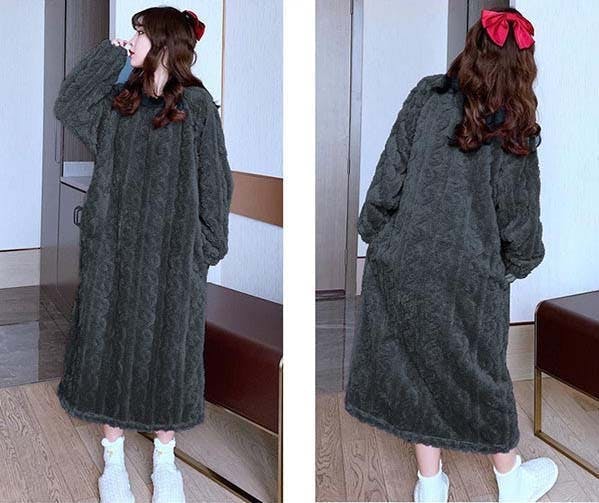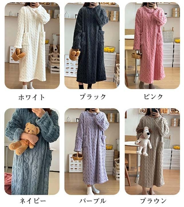 超保温ルームウェア 膝下までのワンピースがおススメ ルームウェア レディース ギフト 着る毛布 ルームウェア 裏起毛柔らかい 肌触り 厚手 もこもこ部屋着 防寒