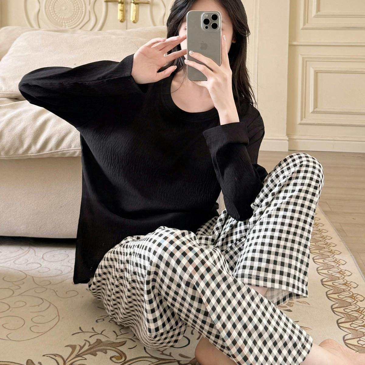 • パジャマ レディース 可愛いパジャマ - 部屋着 レディース 綿 春 夏 秋 長袖 上下セット ワイドパンツ 部屋着 ゆったり 肌に優しい