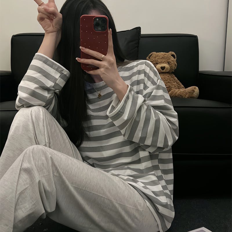 パジャマ レディース 可愛いパジャマ - 部屋着 レディース 綿 春 夏 秋 長袖 上下セット ワイドパンツ 部屋着 ゆったり 肌に優しい