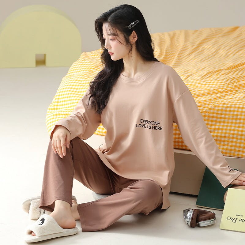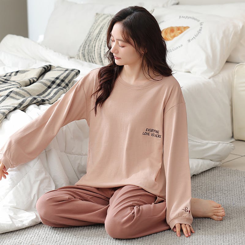 パジャマ レディース 可愛いパジャマ - 部屋着 レディース 綿 春 夏 秋 長袖 上下セット ワイドパンツ 部屋着 ゆったり 肌に優しい