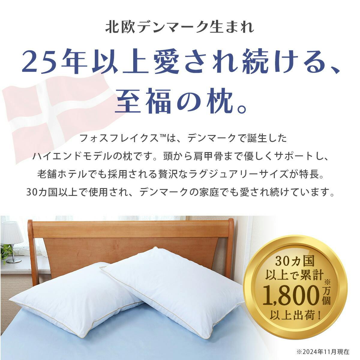 フォスフレイクス 枕 クラシック ホワイト ハイエンドモデル 50×70cm 中材増量 まくら ラージ マクラ 北欧 デンマーク ホテル仕様 ふわふわ 洗える 丸洗い 横向き寝 大きい 柔らかい 肩こり 首こり ストレートネック 安眠枕