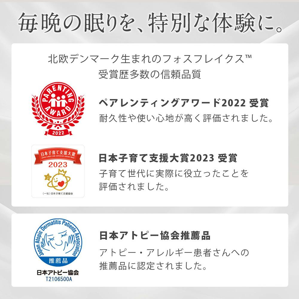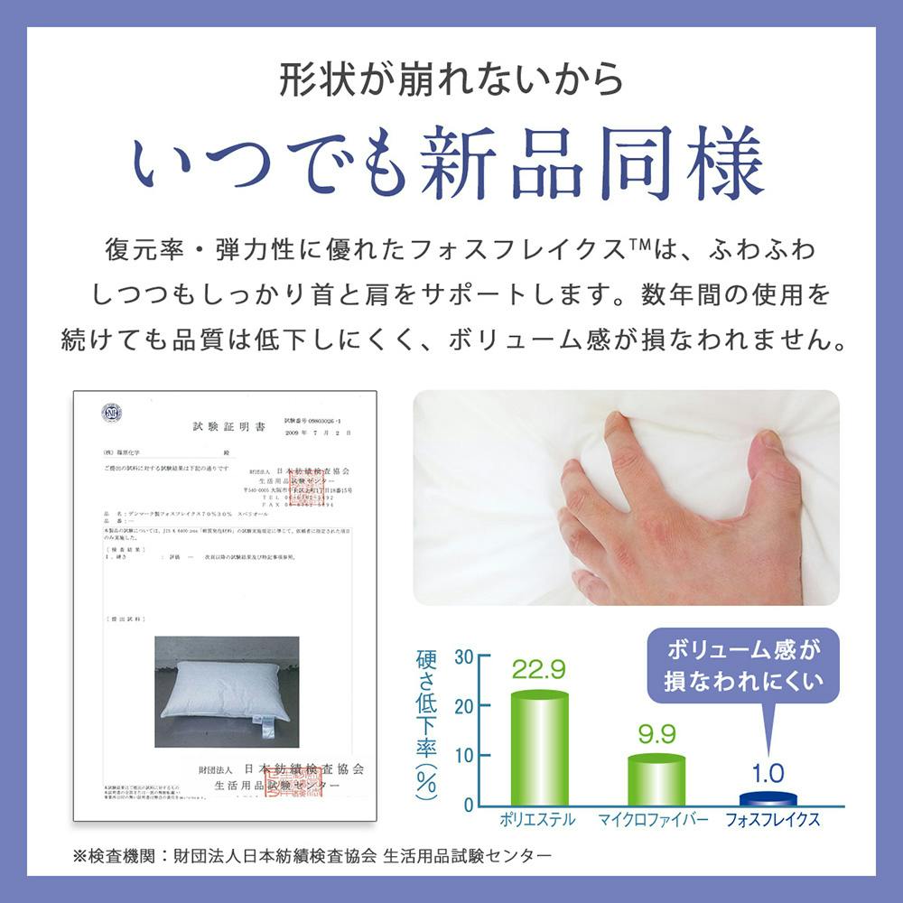 フォスフレイクス特許素材を使用し、ふんわりとした柔らかさと適度な弾力を両立した枕です。頭・首・肩・腕を自然に支えてくれるため、横向き寝や抱き枕としても使いやすい形状になっています。中材は体勢に合わせて形が整いやすく、へたりにくいので長く快適にお使いいただけます。丸洗い・乾燥機に対応しており、清潔さを保ちやすい点も魅力です。側生地は綿100%で肌触りが良く、ダニを通しにくい安心仕様です。