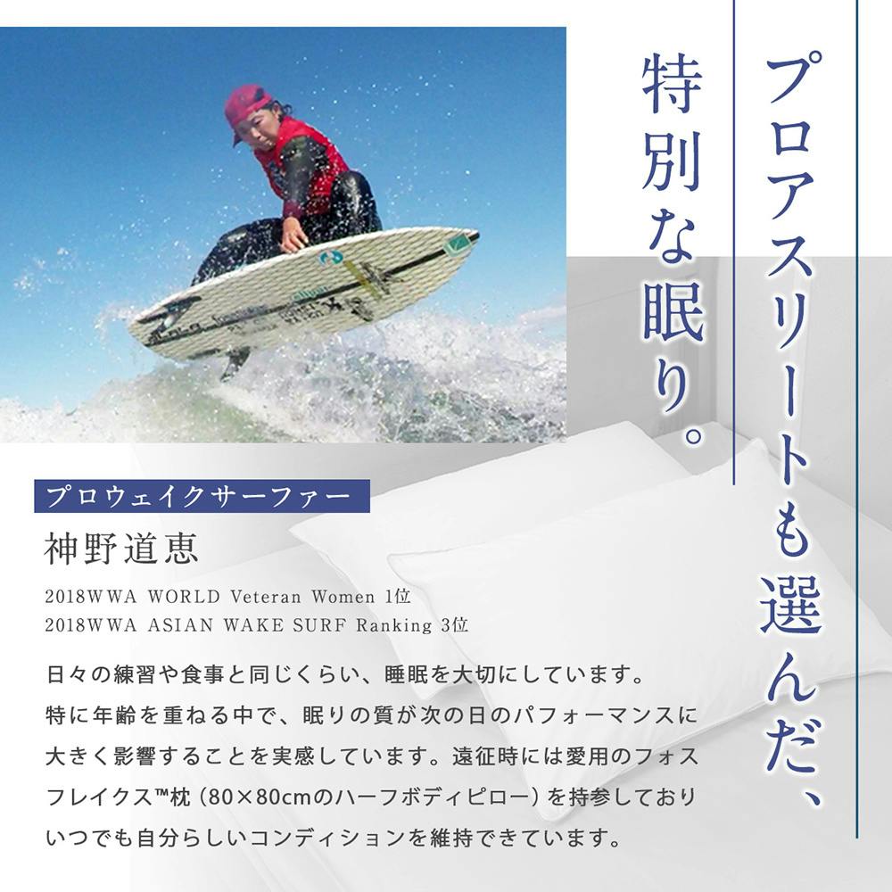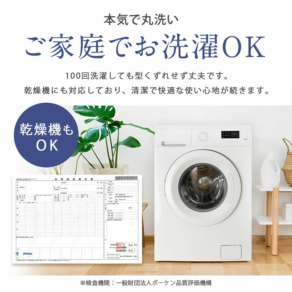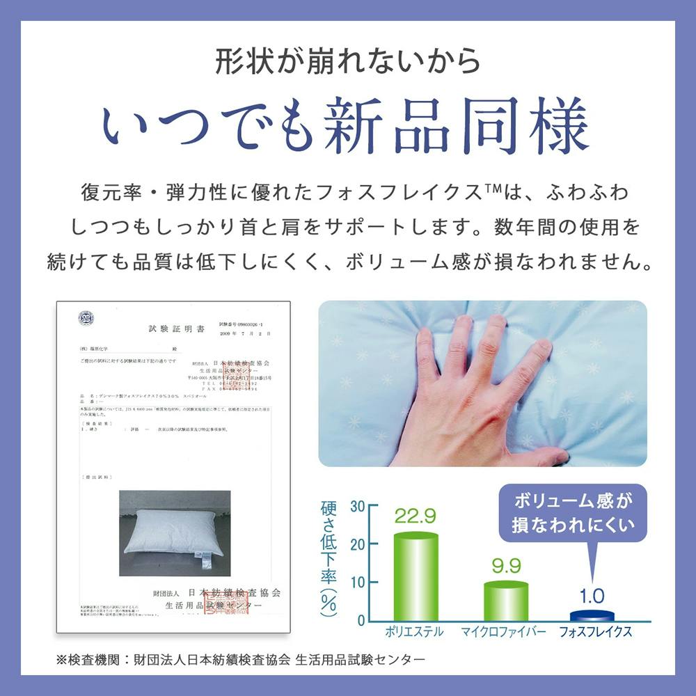 フォスフレイクス特許素材を使用し、ふんわりとした柔らかさと適度な弾力を両立した枕です。頭・首・肩・腕を自然に支えてくれるため、横向き寝や抱き枕としても使いやすい形状になっています。中材は体勢に合わせて形が整いやすく、へたりにくいので長く快適にお使いいただけます。丸洗い・乾燥機に対応しており、清潔さを保ちやすい点も魅力です。側生地は綿100%で肌触りが良く、ダニを通しにくい安心仕様です。
