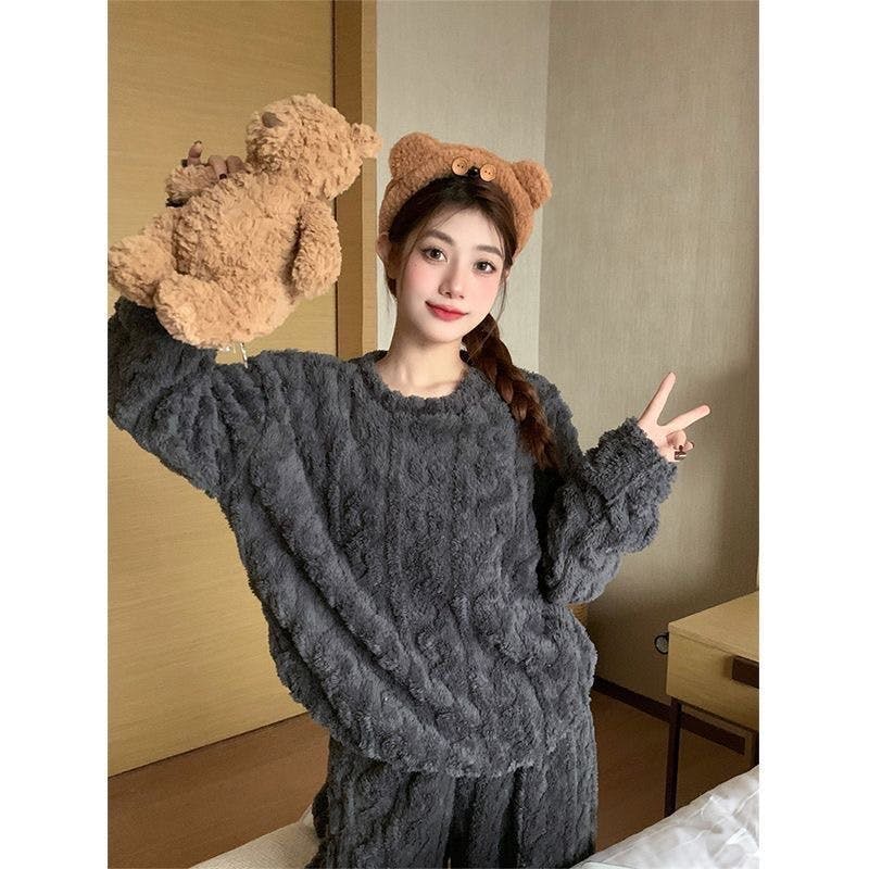 パジャマ レディース 冬用 ふわふわ 部屋着 長袖 長ズボン 上下セット フリース 暖かい 厚手 ゆったり 可愛い 部屋着 パジャマ 秋 冬 春
