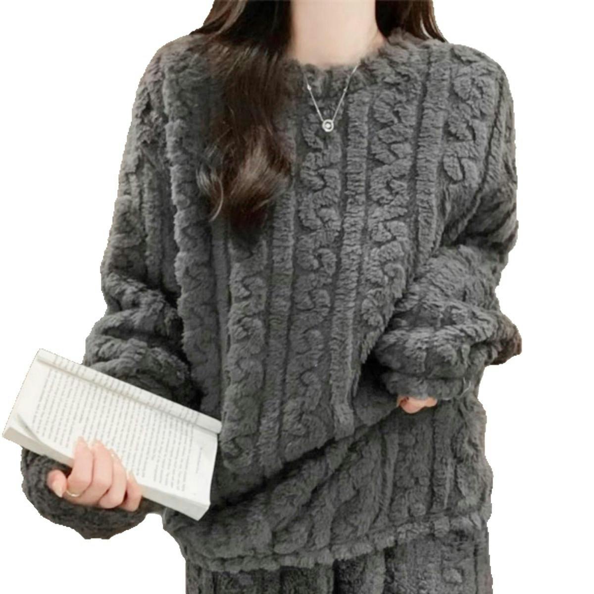 • パジャマ レディース 冬用 ふわふわ 部屋着 長袖 長ズボン 上下セット フリース 暖かい 厚手 ゆったり 可愛い 部屋着 パジャマ 秋 冬 春