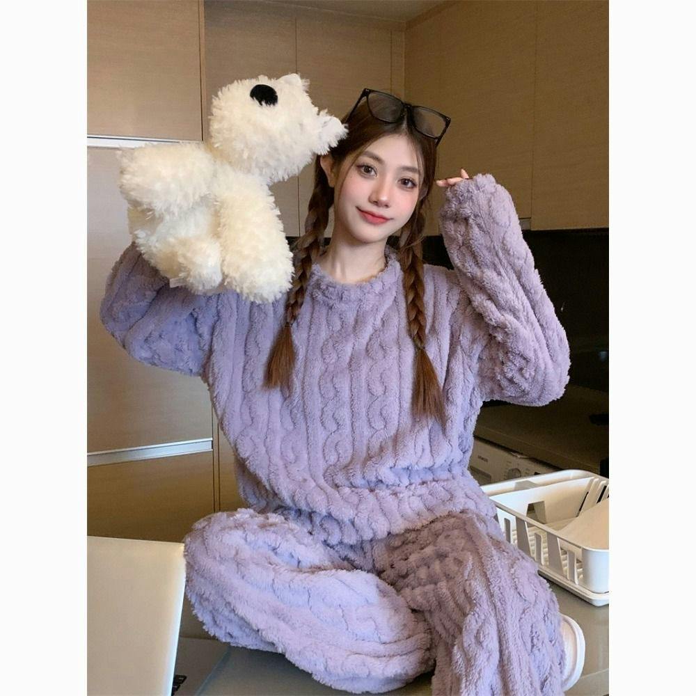 パジャマ レディース 冬用 ふわふわ 部屋着 長袖 長ズボン 上下セット フリース 暖かい 厚手 ゆったり 可愛い 部屋着 パジャマ 秋 冬 春