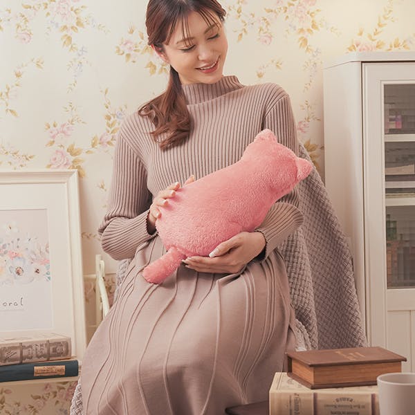 【ふわふわにゃんこ湯たんぽ グレージュ 3色セット(キャメル、ローズピンク、グレージュ)×3個セット】 ちあふる ネコ型 ソフト 湯たんぽ 電気不要 手洗い可 フック付 省エネ 防寒 アウトドア