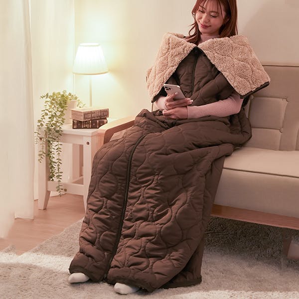 【HOTαリバーシブル着る寝袋クッション ブラウン 約140×190cm】 ちあふる 吸湿発熱 3層構造 リバーシブル 手足出せる クッション収納 連結可 キャンプ 防災 JAN:4571414696364