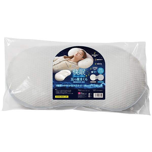 【快眠五つ星まくら ホワイト(グレー)リバーシブル 約30×54×11cm お得な2個セット】 ちあふる 3種中材 正しい寝姿勢 くぼみ形状 横寝サポート 首高調整 リバーシブルカバー Q-MAX0.45以上 JAN:4571414696449