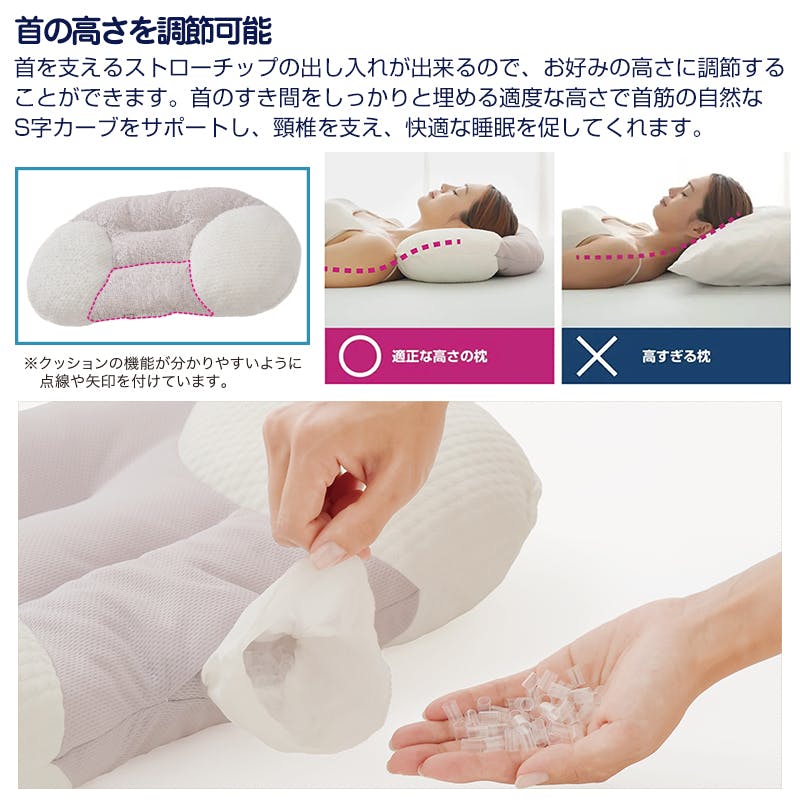 首の高さ調整はファスナーを開け中材を出し入れしてください。中材は経時で収縮し多少かさが減る場合があります。過度な衝撃や圧力は破損の原因になります。破損して中材が出た場合は乳幼児やペットの誤飲に注意してください。