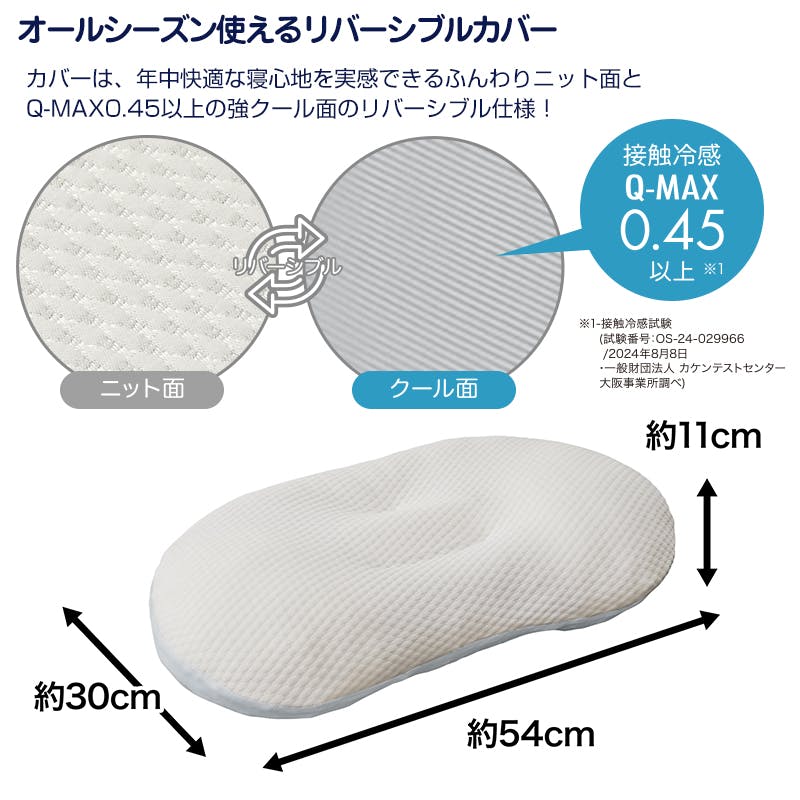 まくらカバー:ニット部/ポリエステル70%・レーヨン30%、クール部/ナイロン90%・ポリウレタン10%/側地:ニット部/ポリエステル70%・レーヨン30%、メッシュ部/ポリエステル100%/中材:ポリウレタン樹脂・ポリエステル・ポリエチレン樹脂