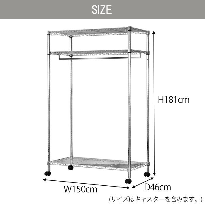 幅151.5×奥行46×高さ181cm(キャスター含む)