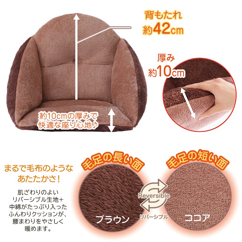 【あったかふわふわ腰ボアクッション ブラウン×ココア 約35×40×42cm お得な2個セット】 ちあふる 腰まわり保温 ボア 中綿入り リバーシブル 節電対策 JAN:4571414696371
