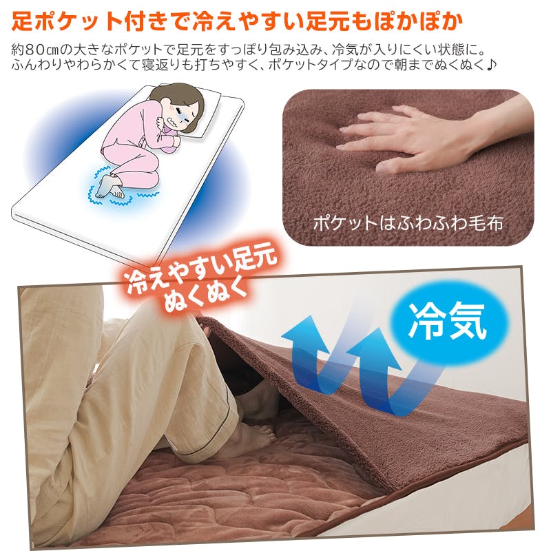 【HOTα蓄熱足ポケット付き敷きパッド ブラウン 100×200cm】 ちあふる 足ポケット 吸湿発熱 蓄熱 4層構造 丸洗いOK 取付簡単 ゴムバンド 冬の寒さ対策 JAN:4571414696388