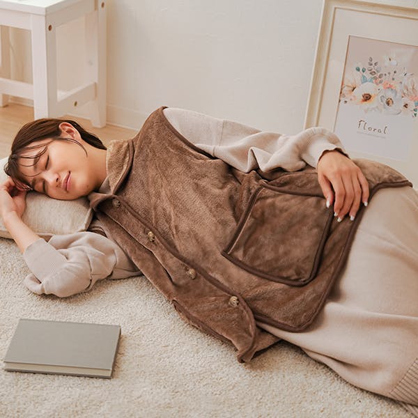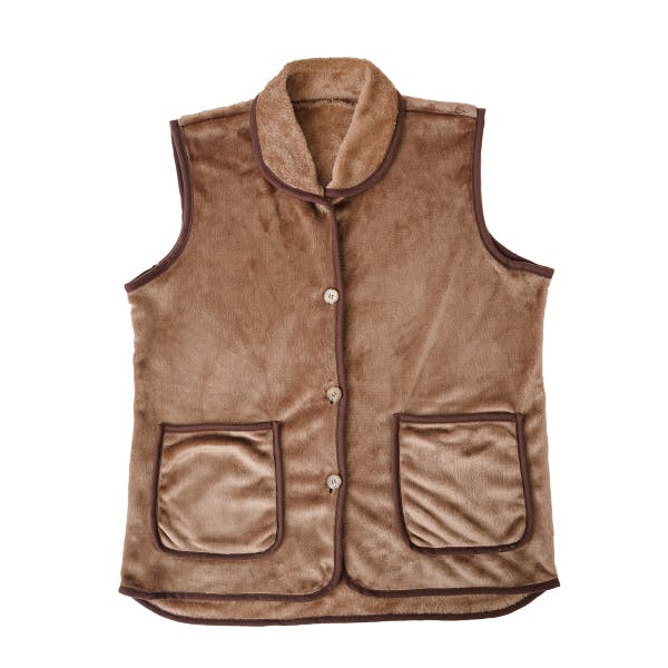 【HOTαあったかくつろぎベスト ブラウン 着丈約72cm】 ちあふる 吸湿発熱 フランネル 軽量 ロング丈 えり付き 大きめポケット 丸洗い 節電 冬用 ルームベスト JAN:4571414694421
