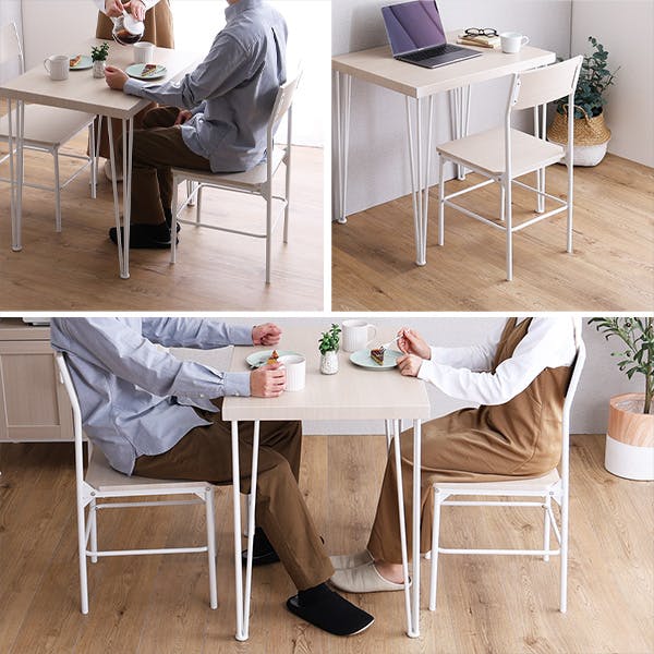 さわやかな背もたれ付きチェア2脚セット背もたれは背中がフィットしやすい座っていて楽な仕様になっています!チェアはホワイトアイアン×木目の相性抜群でお部屋を明るく魅せます。コンパクトサイズでデスクやオフィス、インテリアとしてもお使い頂けます。座面、背もたれは水や汚れに強いPVCを使用しておりますので、軽く拭くだけでお手入れ簡単です。耐荷重は100kgの頑丈設計で長く使えます。