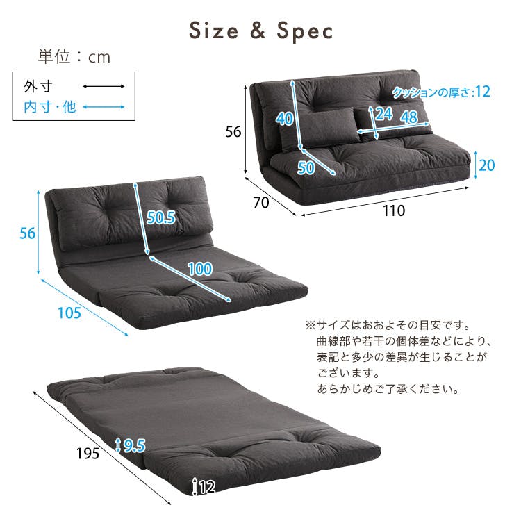 スタイルチェンジができる2人掛け3wayソファ!座椅子、カウチ、ベッドスタイルでシーンに合わせてお使い頂けます。座椅子タイプはローテーブルと一緒に使用できます。カウチタイプは脚を伸ばせて、2人並んで広々寛げますゆったりできます。ベッドタイプはちょっとした昼寝や来客用の簡易ベッドになります。ファブリック素材はオールシーズン快適に過ごせます。