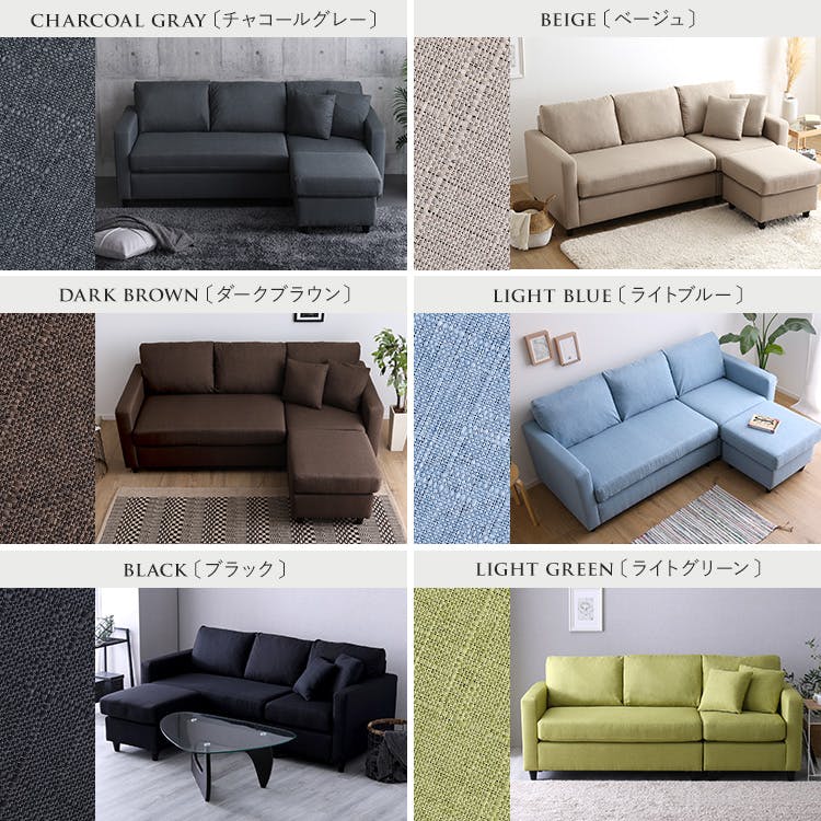 お部屋の間取りに合わせてレイアウトを自由に変更できるファブリックコーナー3人掛けソファ!座面にはポケットコイルを入れているため、程良い弾力性があり負担が少なく座ることができます。幅は185cmあるので、ゆったりと脚を伸ばしてくつろげる広々ソファです。背もたれとクッションはカバーリングなので、汚れてもで直ぐに丸洗いできます。オールシーズン快適に過ごせるファブリックタイプの生地を採用しています。脚を外すとローソファにスタイルチェンジでき、テーブルの高さに合わせてお好みで調整できます。