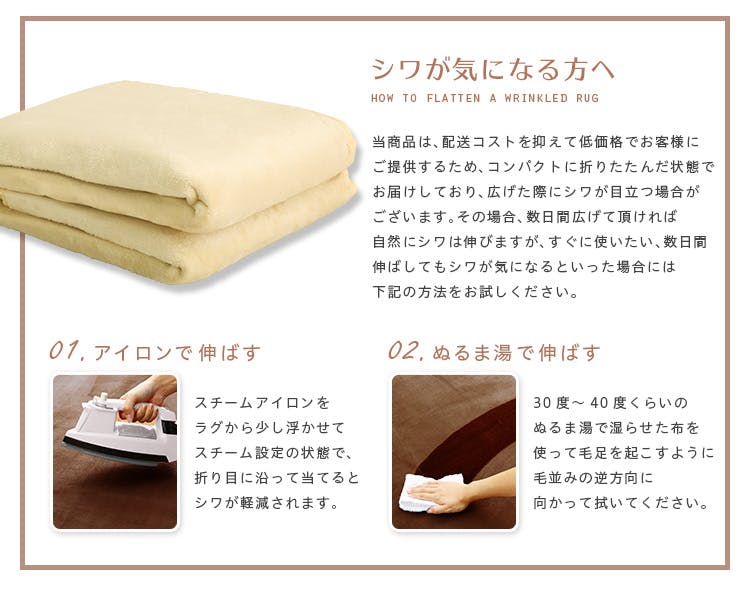 ※本製品は繊維製品の為、製造上、数cmの誤差が生じる可能性がございます。ご了承くださいませ。・開封直後は、折りジワやゆがみ、サイズが小さい、厚みが薄い等ございますが1~2週間程度かけて、徐々に回復していきます。気温により回復までにかかる時間が前後します。