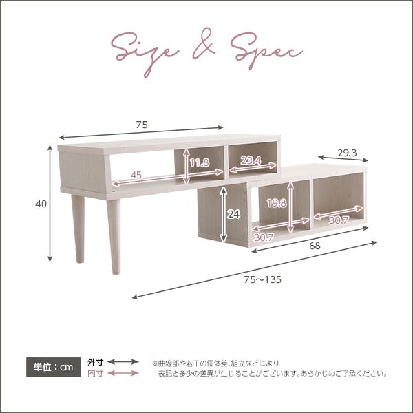 大人かわいいコンパクト伸縮テレビ台!薄型テレビに特化したスリム設計の伸縮式テレビ台!本体幅を調節できるから、設置スタイルは思いのまま魅せるオープン収納で自分だけの空間を演出。美しい木目調の3カラーからお選びいただけます