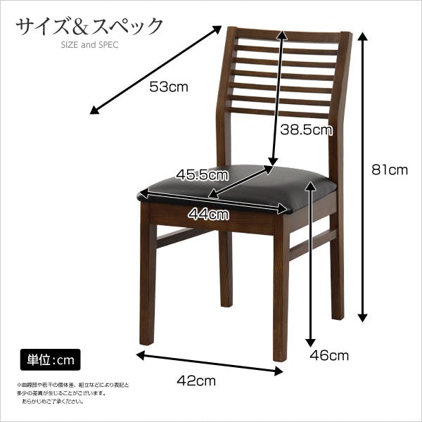 外寸:(約)幅44x奥行き53x高さ81cm(座面高:46cm)、商品重量 チェア(約)5.5kg(一脚あたり)