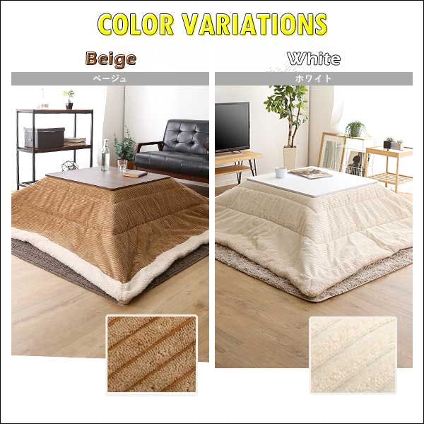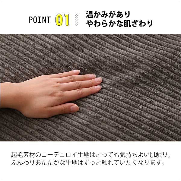 見た目も肌触りも温かなコーデュロイの薄掛けこたつ布団 正方形タイプ。薄型タイプなので、かさばらずすっきりとした印象を与えながら、裏地にはフリース素材を用いているので、保温性の高い仕上がりになっています。使わない時は小さく仕舞える収納袋付き!