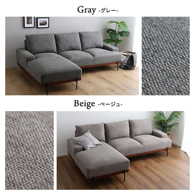 スチール脚がスタイリッシュな3人掛けカウチソファ!アースカラーのファブリック生地と天然木の構造部分、スチール脚が絶妙にマッチしたデザインで、お部屋の雰囲気をあげてくれること間違いなし!ワイドなゆとりのあるサイズ感なので、リビングでの時間をより快適にしてくれます。
