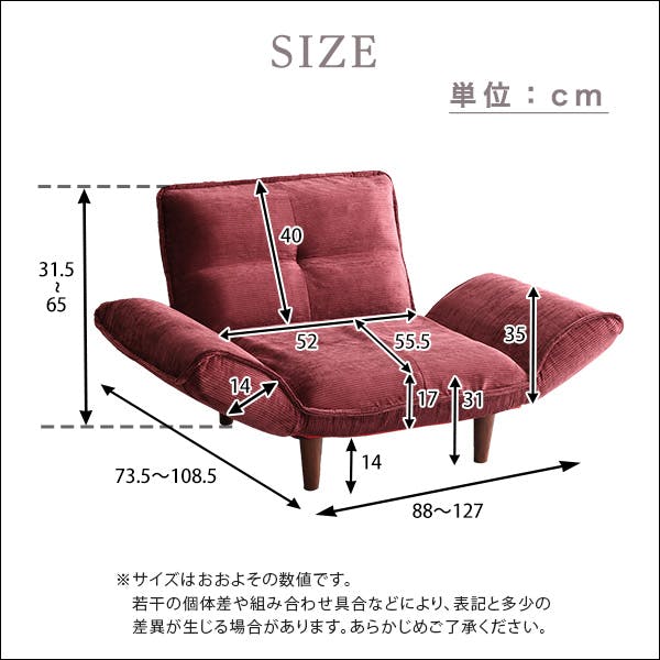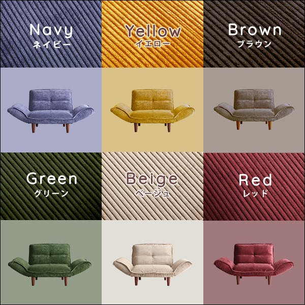 コーデュロイ生地で肌触りが気持ちい1人掛けコンパクトソファ!背もたれ、肘置き部分は14段階リクライニング可能なのでベストな位置に調整できます。ポケットコイル搭載で耐久性GOOD!