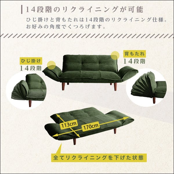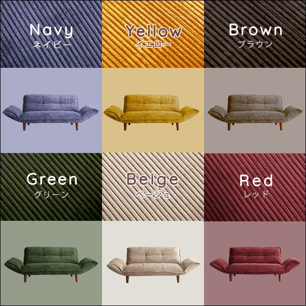 コーデュロイ生地で肌触りが気持ちい2人掛けコンパクトソファ!背もたれ、肘置き部分は14段階リクライニング可能なのでベストな位置に調整できます。ポケットコイル搭載で耐久性GOOD!