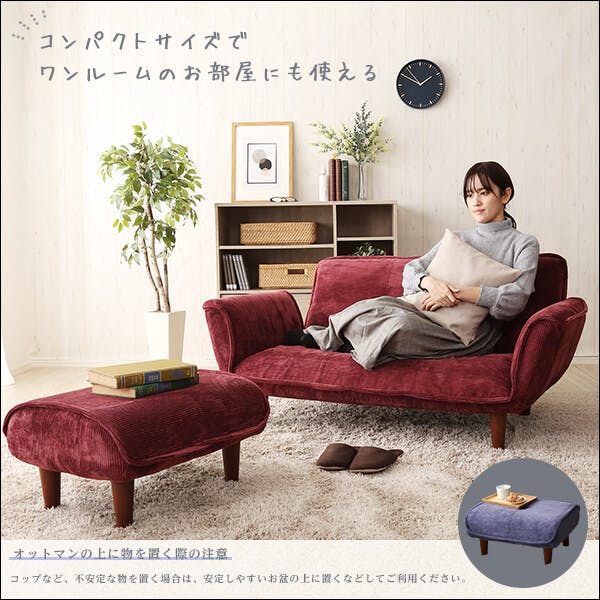 コーデュロイ生地で肌触りが気持ちい2人掛けコンパクトソファとオットマンのセット!足を伸ばせてゆったりくつろげます。背もたれ、肘置き部分は14段階リクライニング可能なのでベストな位置に調整できます。ポケットコイル搭載で耐久性GOOD!※※※1梱包のお届けです※※※